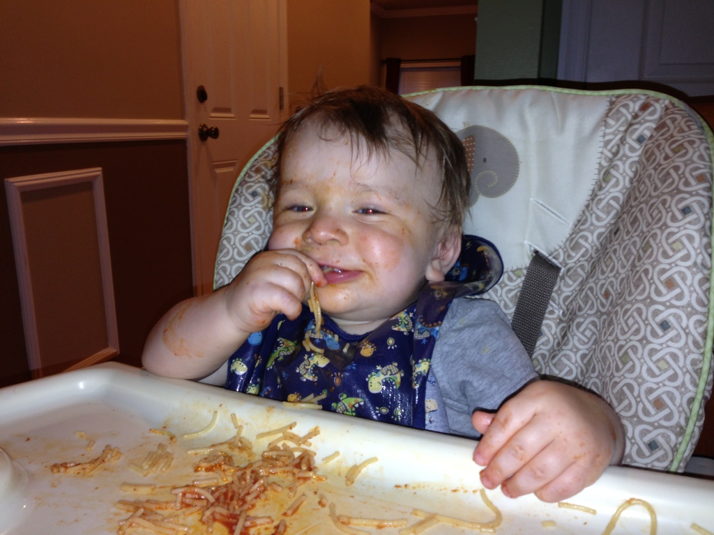 After eating he notices his shadow. He keeps trying to grab it. My favorite part is when he decides he needs to get both hands to catch it.