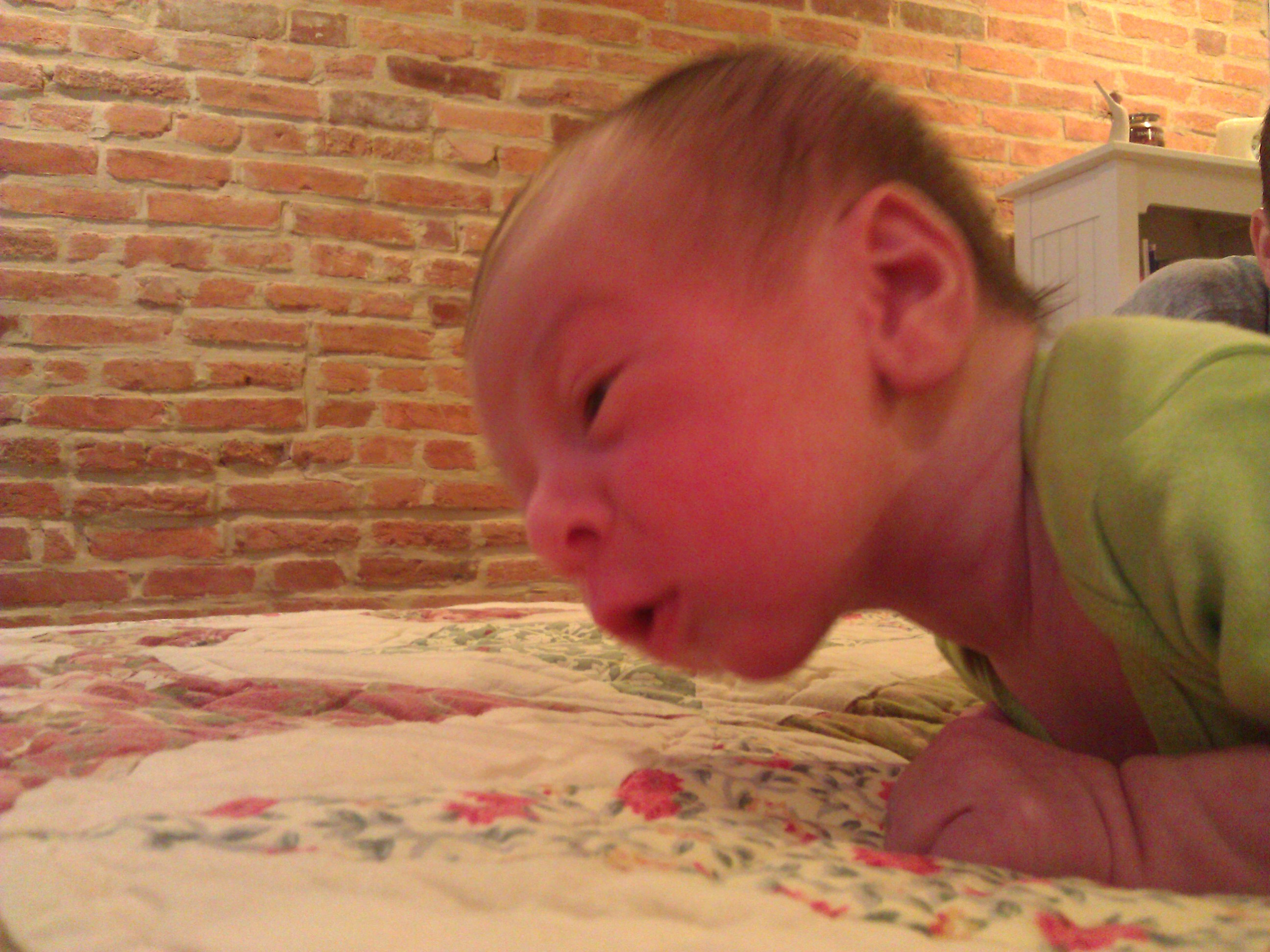 Connor lifting his head up long before he should be able to. He was doing pushups last night but we didn’t get a picture.